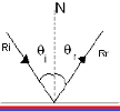 O raio incidente (Ri), a normal (N) e o raio refletido (Rr) são coplanares, ou seja, estão contidos no mesmo plano.